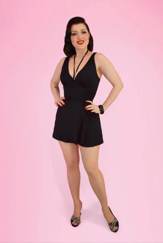 Featuring flared shorts with a playful wrap skirt front, this piece effortlessly blends bold style with retro vibes.